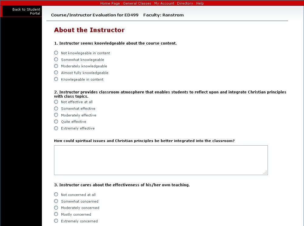 It is a common practice for colleges to have students fill out a survey rating their satisfaction with a class just taken. OpenCUAS supports an online survey interface for capturing that data and reporting the results. However, that interface uses web controls organized in a manner not supported by the standard AOA control painter. Thus, a special control was created that works against the LOD subobject of SurveyQuestion and SurveyMultiChoiceOption, generating special HTML at execution time based on the data